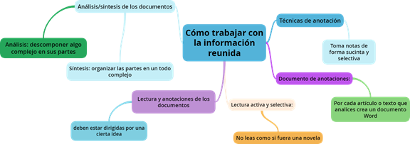 El resultado central de esta fase 2ª debe ser un borrador de esquema o estructura de la síntesis personal que vas a elaborar sobre el tema, o sea, el armazón que va a tener. Conforme estudias las anotaciones vas identificando las cuestiones clave, los datos que te parecen más claros e importantes.